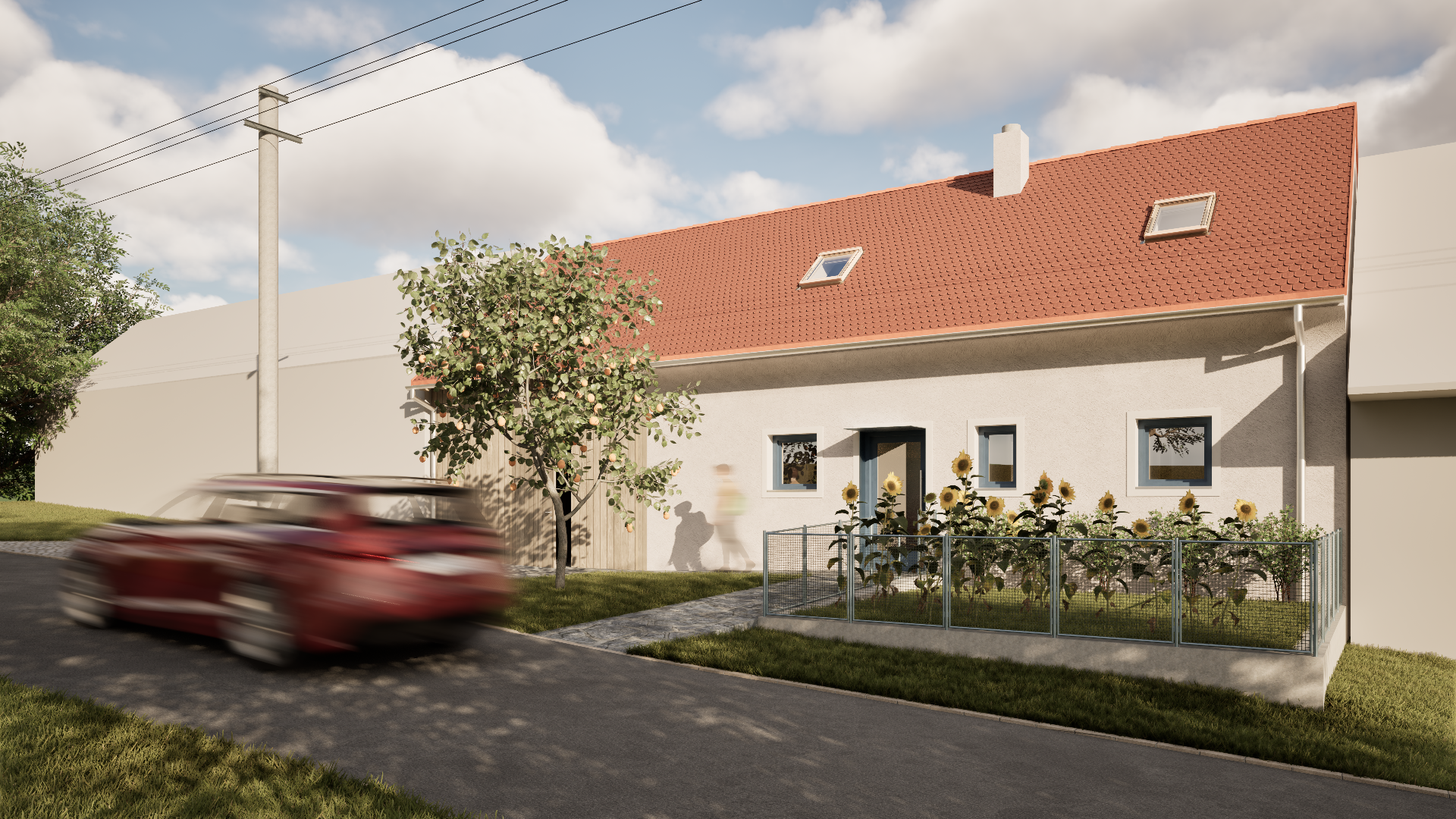 Návrh venkovského domu v Kelníkách vychází z archetypu tradičního vesnického stavení, kde obytný dům a hospodářská část tvoří jeden funkční celek. Jednoduchá hmota se sedlovou střechou přirozeně navazuje na okolní zástavbu a respektuje její měřítko i orientaci.